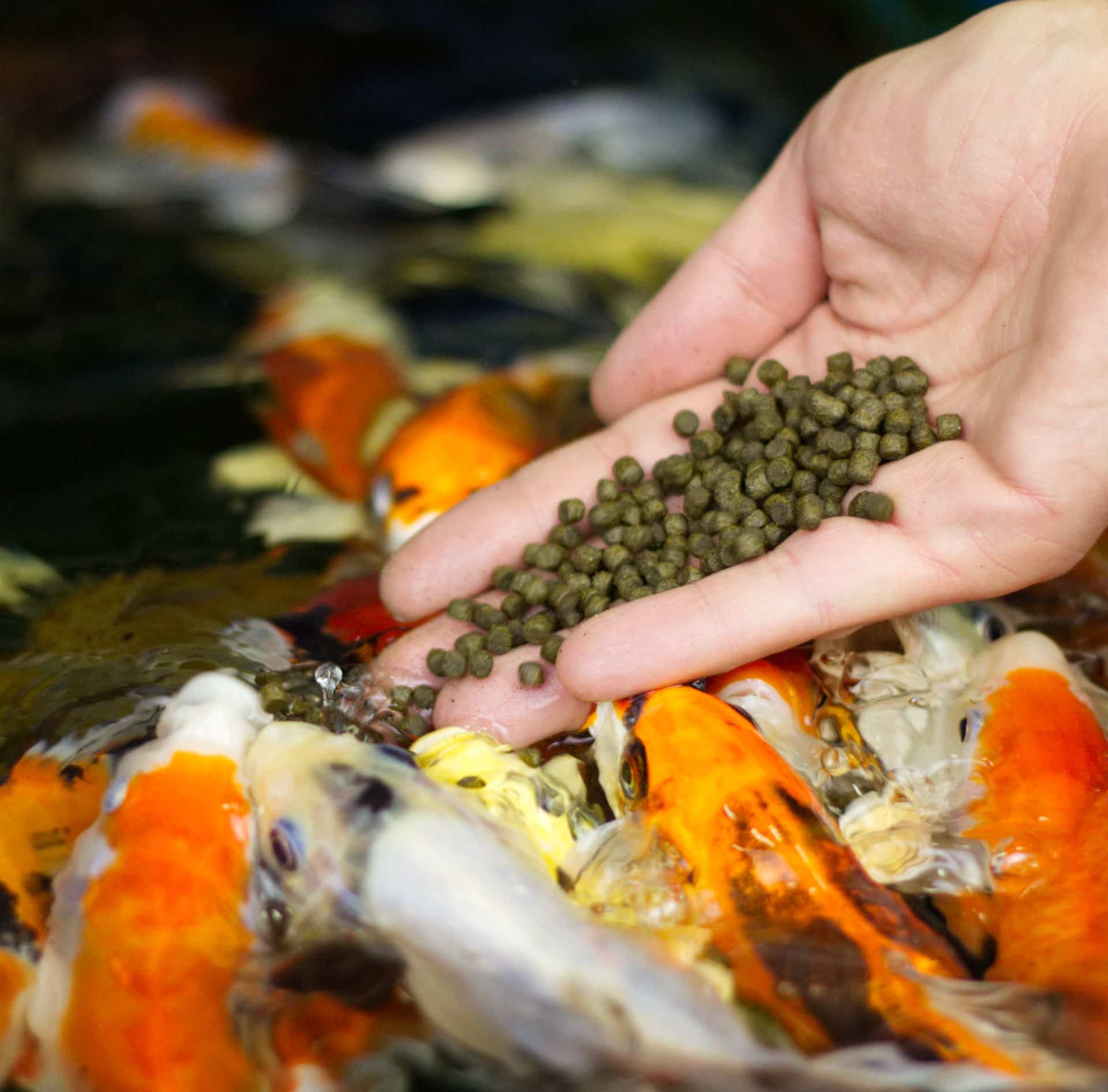 Depending on the water temperature and fish size, feed 0.2 - 1.8% of the fish's weight per day. Below 12 °C, individual, lower feeding amounts apply! Contains fish meal, must not be fed to ruminants.